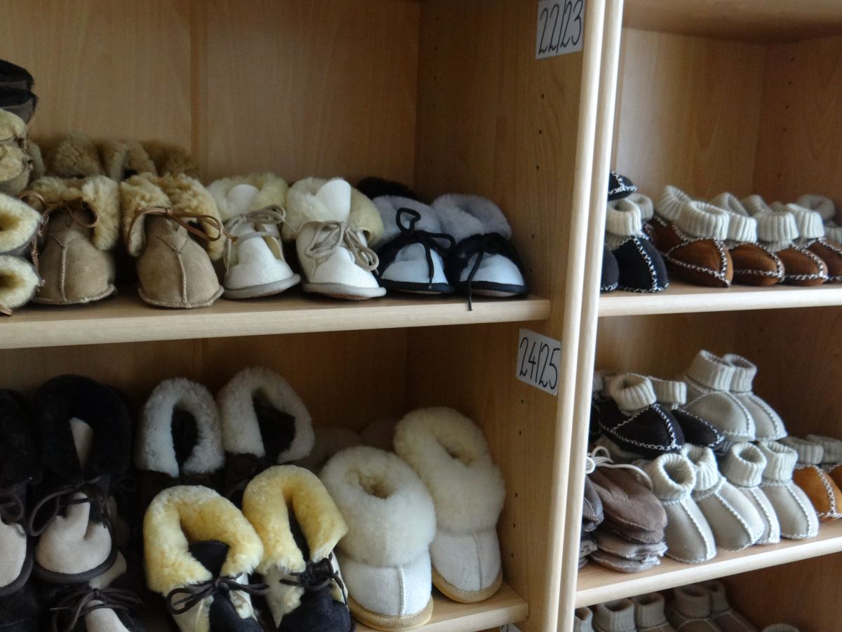 Lammfellpuschen Gr. 41-46, doppelte Ledersohle